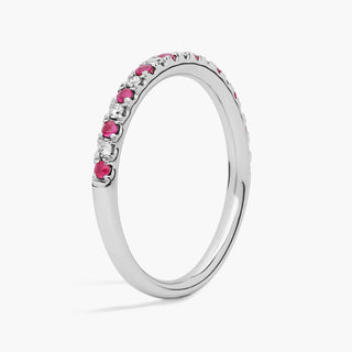 14k White Gold Riviera Pavé Ruby and Diamond Ring (1.5mm)