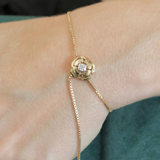 Small 14k yellow gold bolo bracelet with emerald and diamonds (2.2 mm)