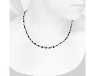18k White Gold Graduated Eternity Necklace with Ruby and Diamonds (2.4mm)