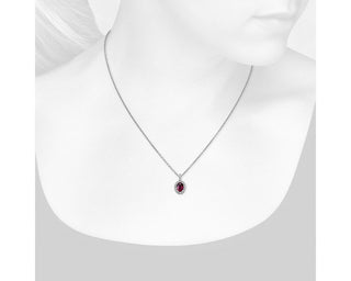14k White Gold Oval Ruby and Pavé Diamond Pendant (7x5mm)