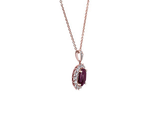 Sunburst Halo Pendant in 14k Rose Gold with an oval ruby and diamond (9x7mm)