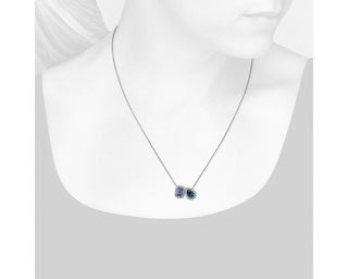 Two-stone pendant set in 14k white gold with tanzanite and blue topaz with a diamond halo.