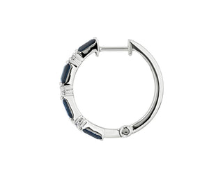 Alternating Sapphire Baguette And Round Diamond Hoop Earrings In 14k White Gold