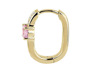 Front Facing Pink Sapphire And Diamond Hoop Earrings In 14k Yellow Gold