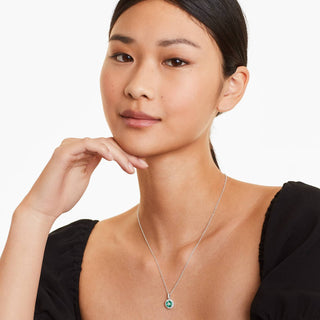 14K White Gold Allure Diamond Halo Emerald Necklace