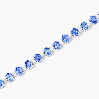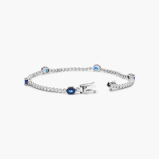 14K White Gold Oval Blue Sapphire And Diamond Tennis Bracelet