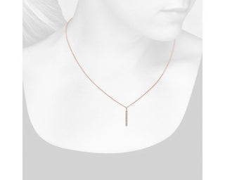 Tiny 14k rose gold vertical bar pendant set with diamonds