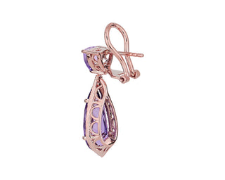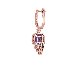 Cushion Cut Amethyst And Diamond Drop Earrings In 14k Rose Gold