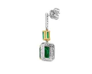 Extraordinary Collection: Emerald And Diamond Drop Earrings In 18k Yellow And White Gold (9x7mm)