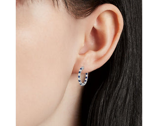 Luna Sapphire And Diamond Hoop Earrings In 18k White Gold (2mm)