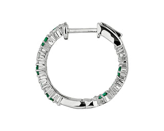 Staggered Emerald And Diamond Hoop Earrings In 14k White Gold