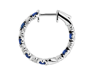 Staggered Sapphire And Diamond Hoop Earrings In 14k White Gold