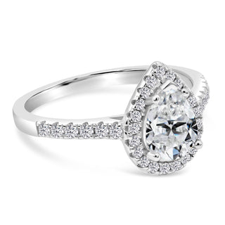 2.5 Ct. Flawless Simulated Diamond Pear Halo Engagement Ring in 14K Plated White Gold