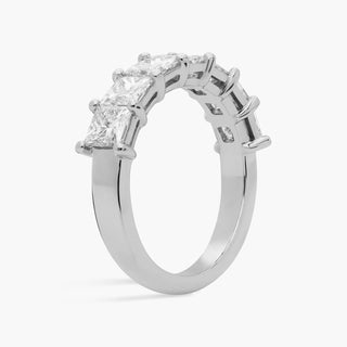 A platinum two-carat princess-shaped diamond ring with seven stones.