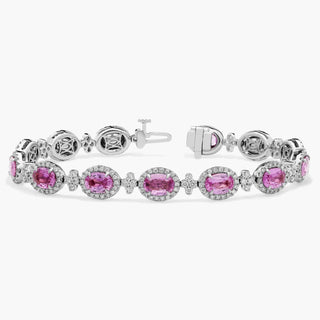 Unusual Collection: 18k White Gold Pink Sapphire and Pavé Diamond Halo Bracelet (7x5mm)