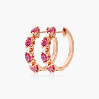 14K Rose Gold Alternating Oval Ruby And Round Diamond Hoop Earrings