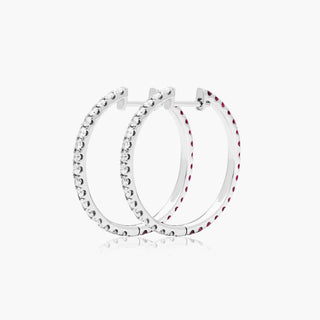 14K White Gold Half And Half Ruby And Diamond Hoop Earrings