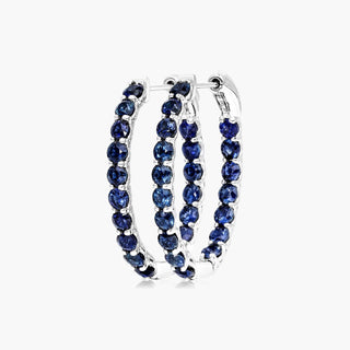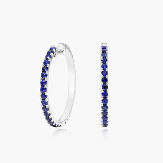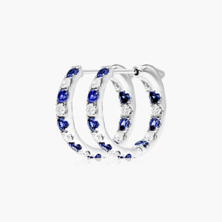 14K White Gold Inside Out Sapphire And Diamond Round Hoops, 3/4 Inch Diameter.