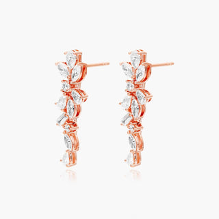 14K Rose Gold Whimsical Diamond Floral Cluster Drop Earrings