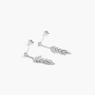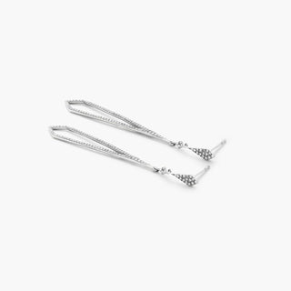 14K White Gold Petite Long Drop Diamond Earrings