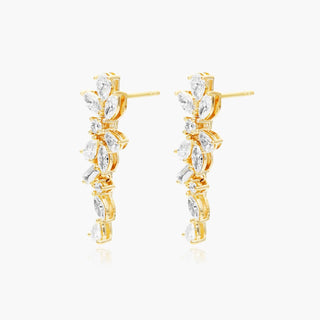 14K Yellow Gold Whimsical Diamond Floral Cluster Drop Earrings