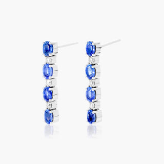 14K White Gold Oval Blue Sapphire And Diamond Drop Earring