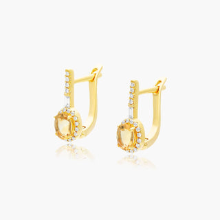 14K Yellow Gold Halo Citrine And Diamond Petite Drop Earrings