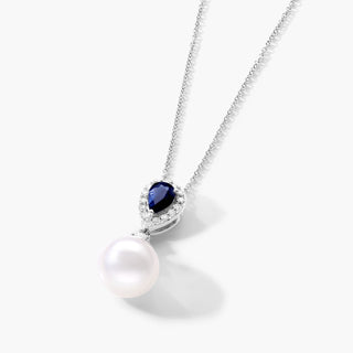 14K White Gold Akoya Cultured Pearl And Sapphire Drop Necklace (9.5mm)